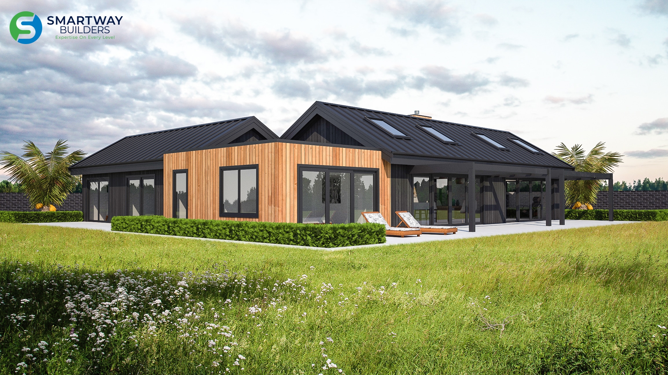 This is a modular home with a strong entry. All bedrooms and bathrooms are designed to pick up the morning sun while the outdoors and living areas are positioned to pick up sun throughout the day. The outdoor living between the garage and house is sheltered, has an outdoor fireplace and works great for evening entertaining. Both the carport and the nearby outdoor living areas can be closed in as rooms. With so much flexibility, this home is a great choice.