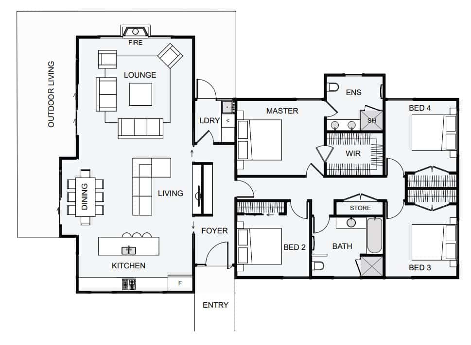 Small and compact, this home is designed to feel large and open. The large glass windows bring in the surrounding environment and the high ceilings in the living space open the place up to feel larger than life. This home is designed to allow the natural integration of a garage into multiple sections of the house depending on its location or orientation. This home can be used as a bach or a home, either would be a great architectural, four bedroom choice.