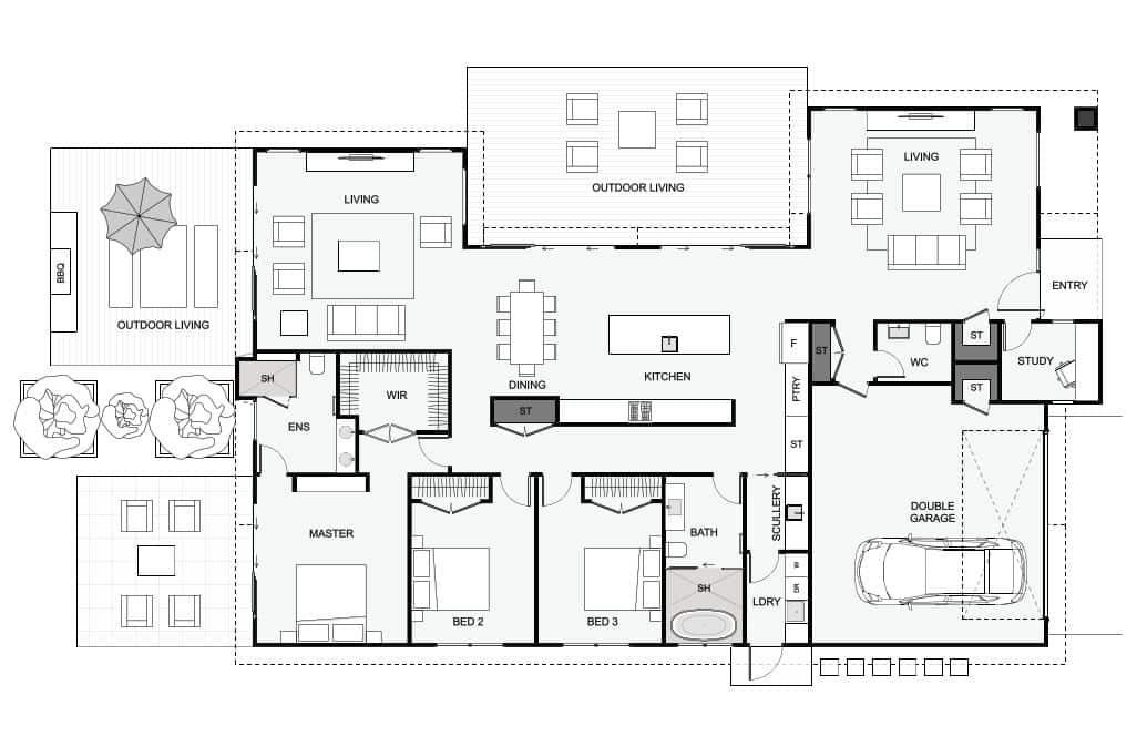 This is the ultimate in family living. The master suite provides a luxurious layout and the main open plan living area with its opulent space includes two living areas at opposite ends of the dining. The kitchen has a good flow back into the home and towards the laundry. This home provides a sense of space and versatility that your family will love!