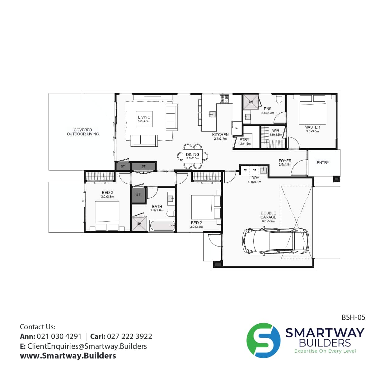 This three-bedroom home has bold styling. The main living inside is an open plan with large sliding doors opening out onto a covered outdoor living space. The master bedroom is positioned separate from other rooms and includes a walk-in wardrobe and ensuite. The kitchen includes a walk-in pantry. The double garage includes a countersunk laundry and access outside. If you are looking for a three-bedroom home with a strong presence, that’s truly timeless, you’ve just found it!