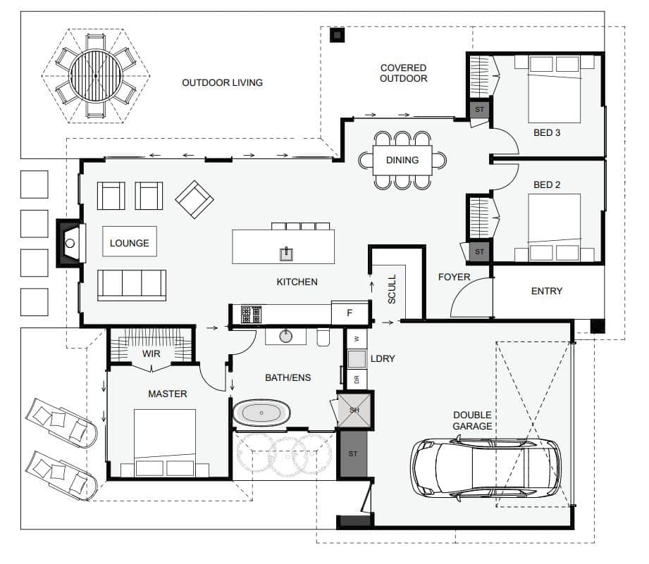 Want a home with minimal hallways and smartly designed spaces? From its quick garage to kitchen access via the scullery - great when bringing the groceries home! The main bathroom doubles as an ensuite, the inset laundry, located, straight off the scullery and the great alfresco flow to both covered and open outdoor living spaces. If three bedrooms are enough for you and you want a feature packed house, this may just be the one!