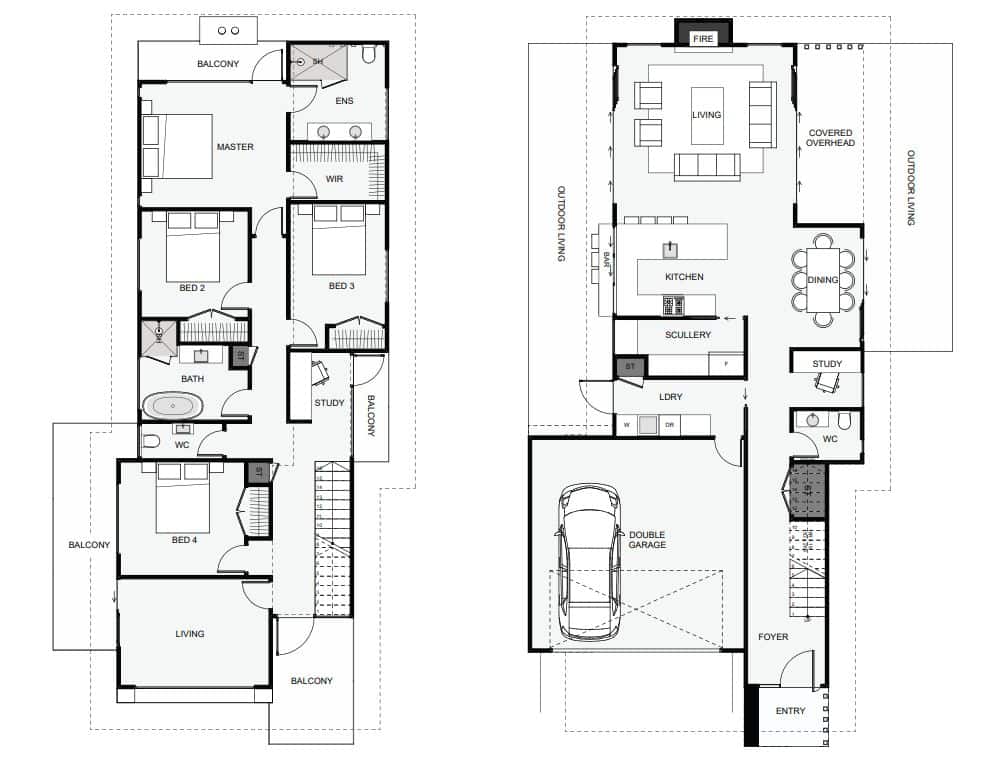 This home is designed for narrower sections without compromise. This home includes everything you could want including a scullery, two studies, dual living, (one up and one down), a kitchen, outdoor bar, a covered outdoor space, four balconies for maximum view potential and some serious street style! If your section is narrow and you like to have it all, you may not find a better home than this!