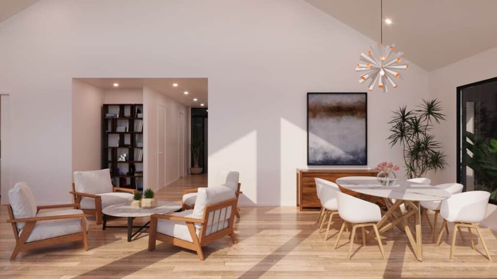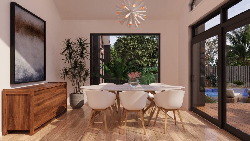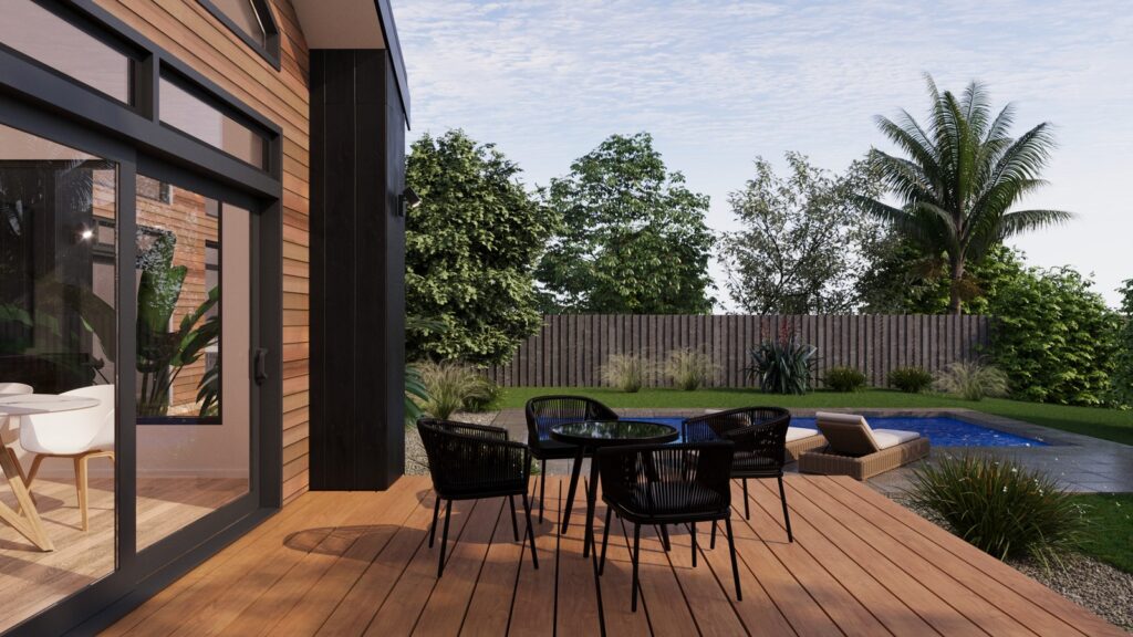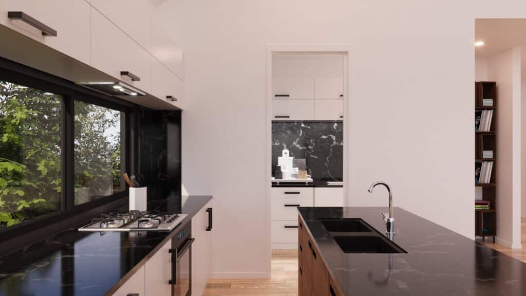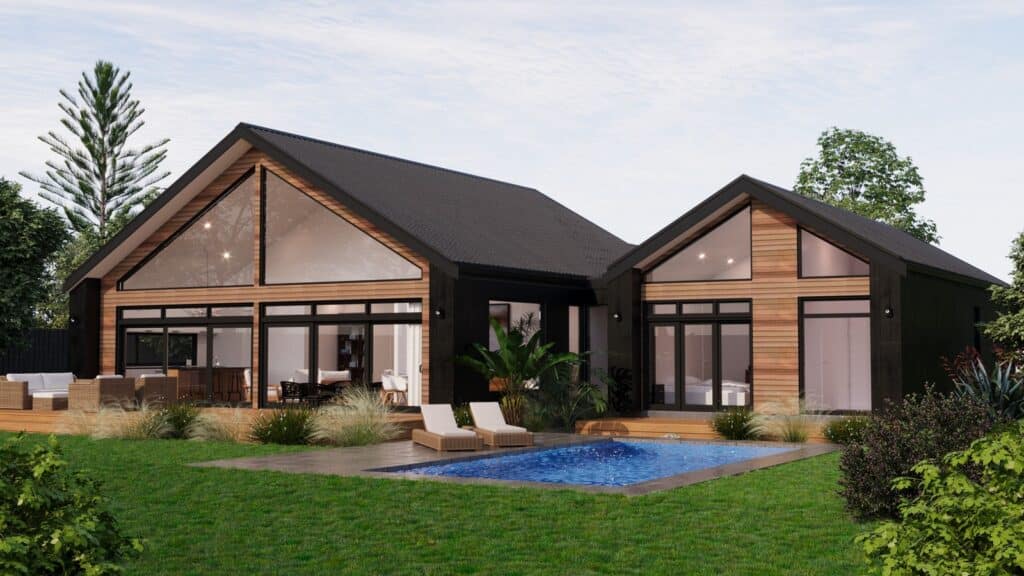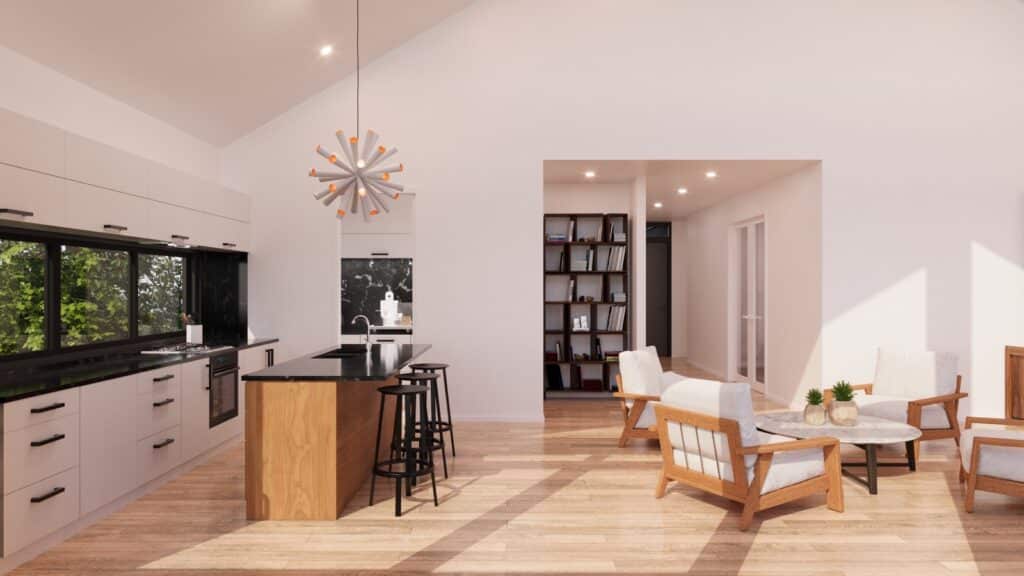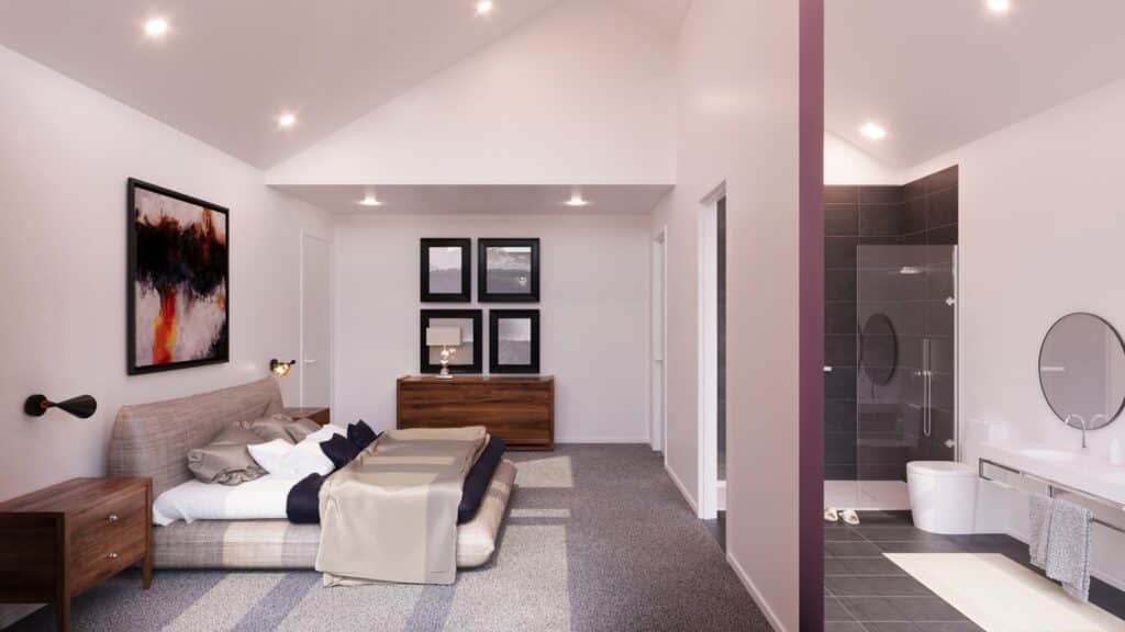 The foyer of this home sits centre with high ceilings and gives a glimpse of the blue sky towards the casual living. The kitchen sits full-width and extends into a large scullery. There is also a large media room with a study nook adjacent, and the master bedroom, complete with ensuite and walk in robe looks onto a private patio and optional pool access, with bedroom 2 also having its own ensuite, this is a home designed to please.