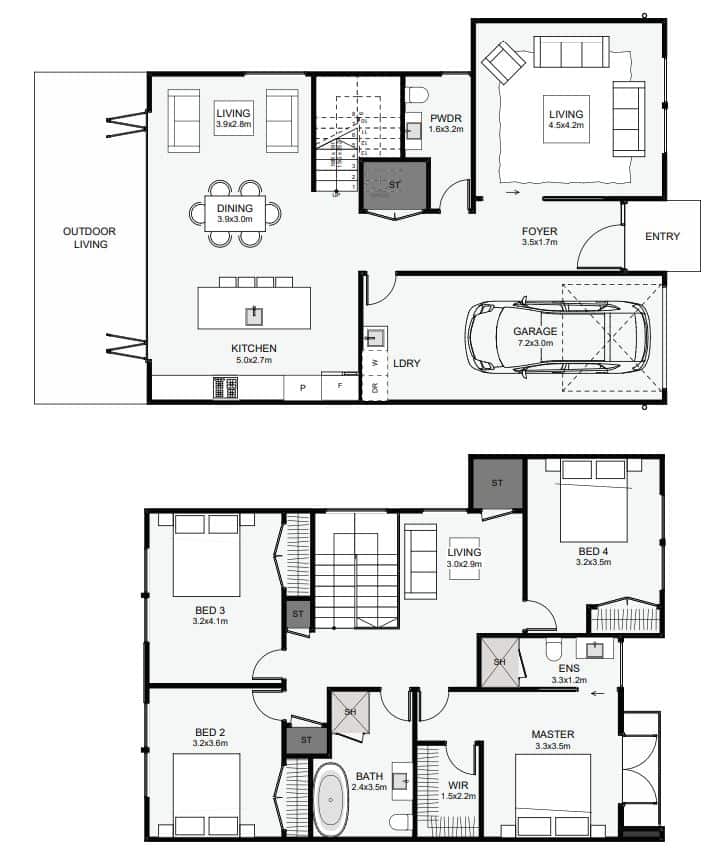 This four-bedroom, brick townhouse is a great low-maintenance choice. Designed to be used either as a standalone townhouse or duplicated as a multi-residence development, this design will have you covered. Inside there are three living spaces, two bathrooms with an extra toilet for guests and plenty of storage, something that's often overlooked in townhouses. With this design its a question of how many do you want to build?
