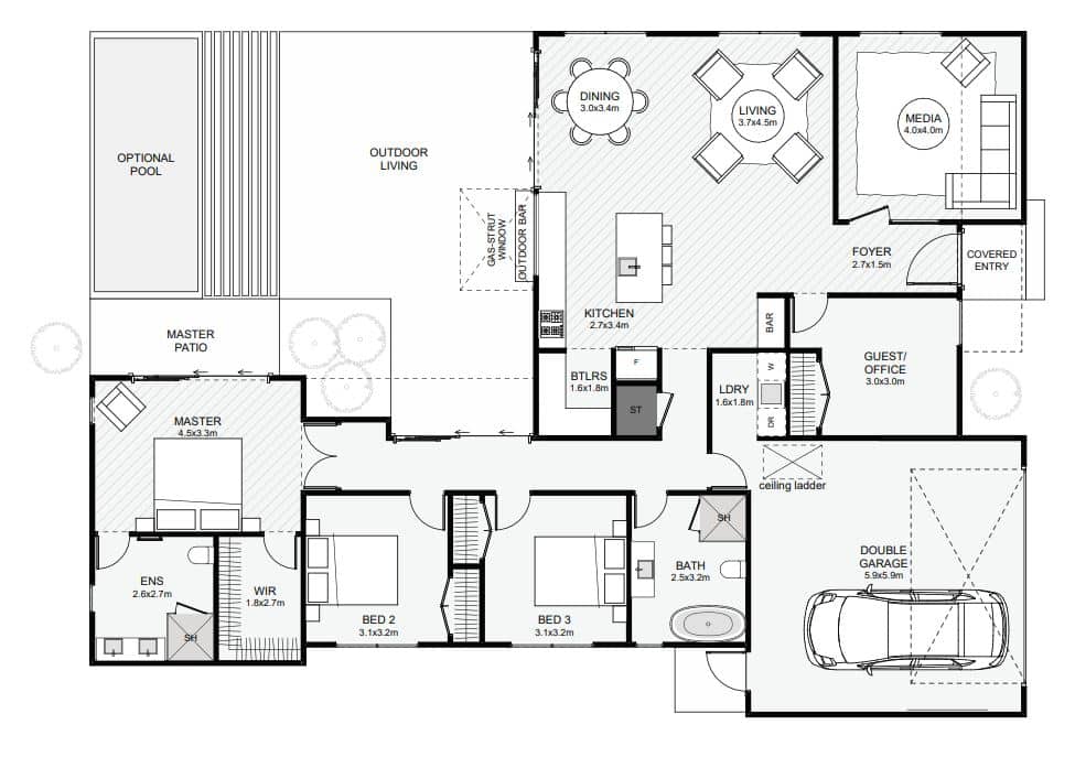 This urban architectural home makes excellent use of space both inside and outside with its clever layout. The master creates the boundary while maintaining privacy and an outlook. The kitchen, dining and living all pick up the morning sun and have an expansive view across the property. Framed gable glass gives an unmatched view into the sky. The kitchen comes with a butler's kitchen and a gas-strut window that serves the outdoor bar. If summer outside by the pool with privacy is your vibe, this is a home that'll achieve that!